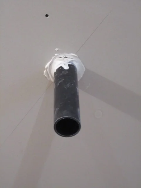To build a net zero energy house it is essential to reduce air leakage to the bare minimum.  Doing so requires a comprehensive effort by the contractors to fill every gap between the heated inside and the outside.  Typical problem areas are at electrical outlets, light fixtures and switches, pipes and ducts, around windows and doors, and at wall intersections.  For this house, we used a combination of spray polyurethane foam and caulk to seal all these gaps.